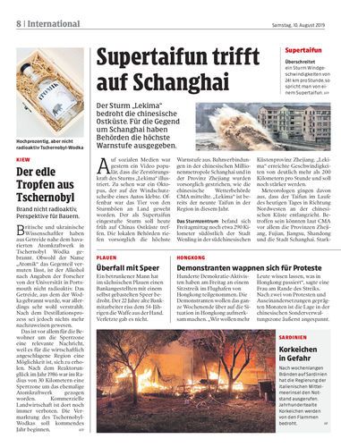 Der Sturm „Lekima“ bedroht die chinesische Ostküste. Für die Gegend um Schanghai haben Behörden die höchste Warnstufe ausgegeben.