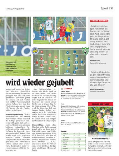 Hohenems beendet seinen Heimspielfluch mit einem beeindruckenden 7:1-Sieg über Langenegg. Hauptverantwortlich dafür war das Offensivtrio um Goalgetter Wunderli.