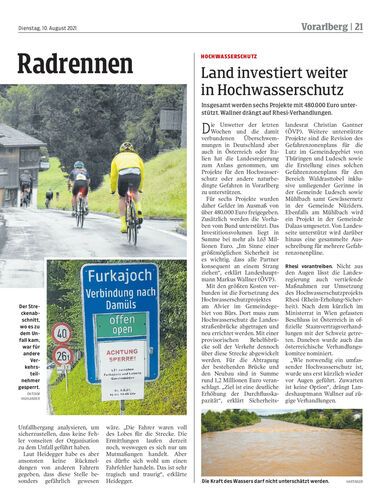 Insgesamt werden sechs Projekte mit 480.000 Euro unterstützt. Wallner drängt auf Rhesi-Verhandlungen.