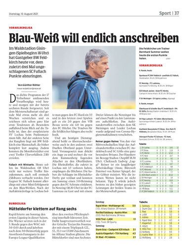 Im Waldstadion Gisingen (Spielbeginn 18 Uhr) hat Gastgeber BW Feldkirch heute vor, dem zuletzt drei Mal ungeschlagenen SC Fußach Punkte abzuringen.