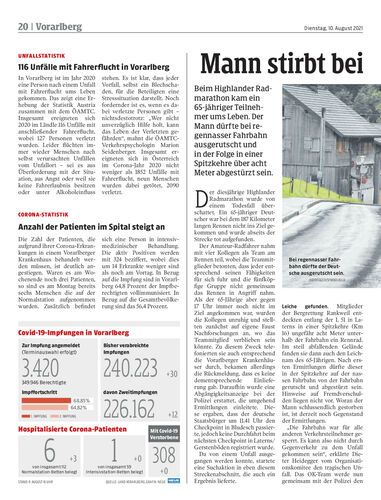 Beim Highlander Radmarathon kam ein 65-jähriger Teilnehmer ums Leben. Der Mann dürfte bei regennasser Fahrbahn ausgerutscht und in der Folge in einer Spitzkehre über acht Meter abgestürzt sein.