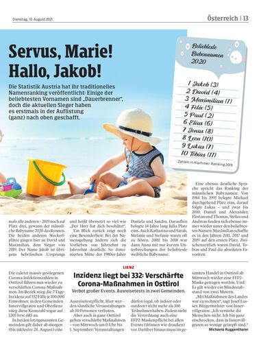 Die Statistik Austria hat ihr traditionelles Namenranking veröffentlicht: Einige der beliebtesten Vornamen sind „Dauerbrenner“, doch die aktuellen Sieger haben es erstmals in der Auflistung (ganz) nach oben geschafft.