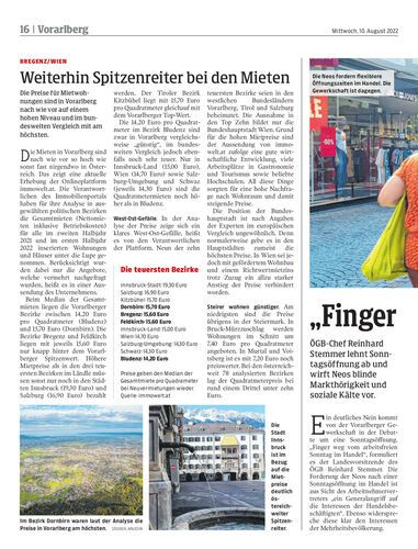 Die Preise für Mietwohnungen sind in Vorarlberg nach wie vor auf einem hohen Niveau und im bundesweiten Vergleich mit am höchsten.