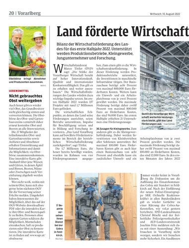 Bilanz der Wirtschaftsförderung des Landes für das erste Halbjahr 2022. Unterstützt werden Produktionsbetriebe, Kleingewerbe, Jungunternehmer und Forschung.