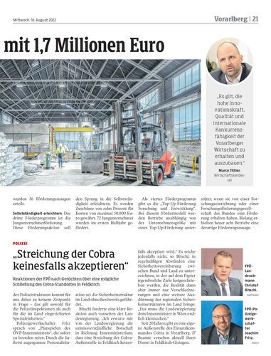 Reaktionen der FPÖ nach Gerüchten über eine mögliche Schließung des Cobra-Standortes in Feldkirch.