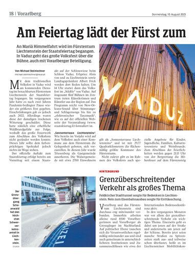 An Mariä Himmelfahrt wird im Fürstentum Liechtenstein der Staatsfeiertag begangen. In Vaduz geht das große Volksfest über die Bühne, auch mit Vorarlberger Beteiligung.
