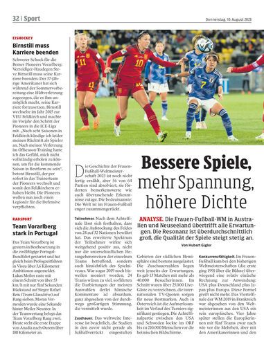 Analyse. Die Frauen-Fußball-WM in Australien und Neuseeland übertrifft alle Erwartungen. Die Resonanz ist überdurchschnittlich groß, die Qualität der Spiele steigt stetig an. Von Hubert Gigler