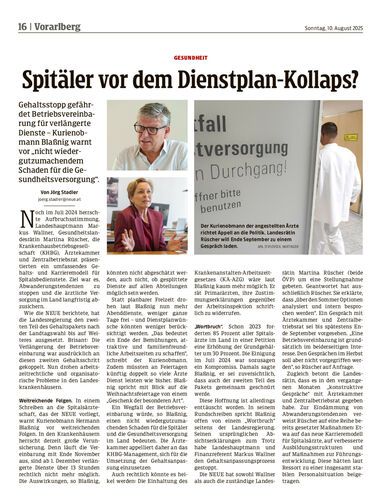 Gehaltsstopp gefährdet Betriebsvereinbarung für verlängerte Dienste – Kurienobmann Blaßnig warnt vor „nicht wiedergutzumachendem Schaden für die Gesundheitsversorgung“.
