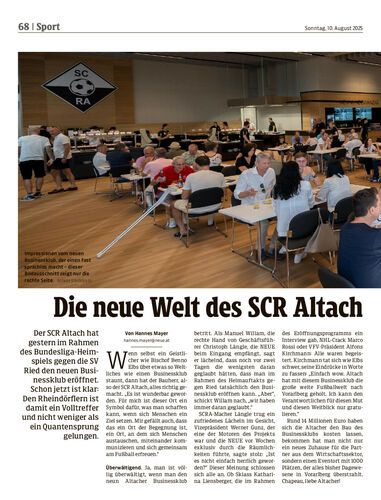 Der SCR Altach hat gestern im Rahmen des Bundesliga-Heimspiels gegen die SV Ried den neuen Businessklub eröffnet. Schon jetzt ist klar: Den Rheindörflern ist damit ein Volltreffer und nicht weniger als ein Quantensprung gelungen.