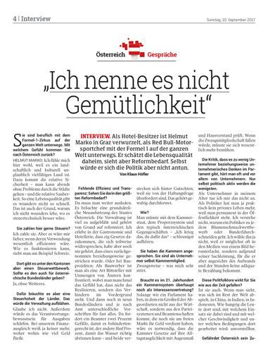 Interview. Als Hotel-Besitzer ist Helmut Marko in Graz verwurzelt, als Red Bull-Motorsportchef mit der Formel 1 auf der ganzen Welt unterwegs. Er schätzt die Lebensqualität daheim, sieht aber Reformbedarf. Selbst würde er sich die Politik aber nicht antun. Von Klaus Höfler