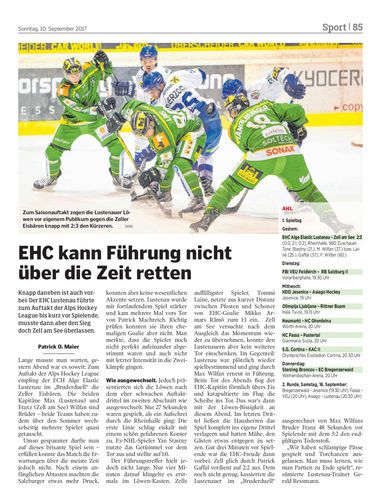 Knapp daneben ist auch vorbei: Der EHC Lustenau führte zum Auftakt der Alps Hockey League bis kurz vor Spielende, musste dann aber den Sieg doch Zell am See überlassen.