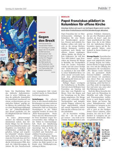 Papst Franziskus plädiert in Kolumbien für offene Kirche