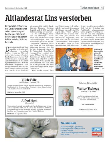 Der gebürtige Satteinser Guntram Lins war zehn Jahre lang als Landesrat tätig und setzte unter anderem Initiativen im Kulturbereich.