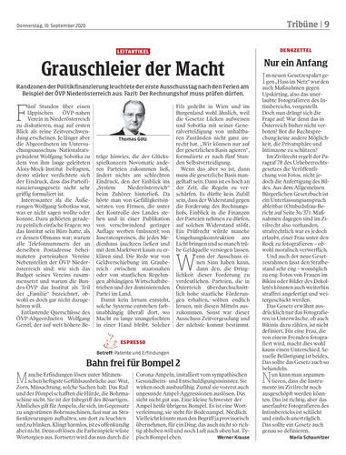 Randzonen der Politikfinanzierung leuchtete der erste Ausschusstag nach den Ferien am Beispiel der ÖVP Niederösterreich aus. Fazit: Der Rechnungshof muss prüfen dürfen.