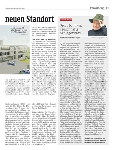 Bis 2023 soll der neue Standort in Dornbirn-Pfeller fertig sein. Insgesamt werden 50 Millionen Euro investiert. Nach dem Umzug wird das Werk Hohenems aufgelassen.