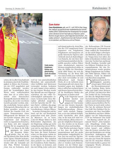 ESSAY. Europa blickt heute gebannt auf Katalonien. Ruft die rebellische Provinz ihre Unabhängigkeit aus? Der niederländische Schriftsteller Cees Nooteboom kennt Spanien seit Langem und leidet an dessen Entzweiung.