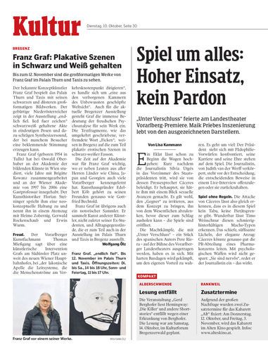 Bis zum 12. November sind die großformatigen Werke von Franz Graf im Palais Thurn und Taxis zu sehen.