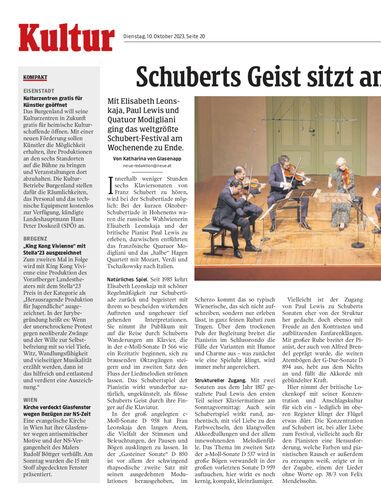 Mit Elisabeth Leonskaja, Paul Lewis und Quatuor Modigliani ging das weltgrößte Schubert-Festival am Wochenende zu Ende.