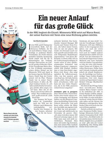 In der NHL beginnt die Eiszeit. Minnesota Wild setzt auf Marco Rossi, der seiner Karriere mit Toren eine neue Richtung geben möchte.