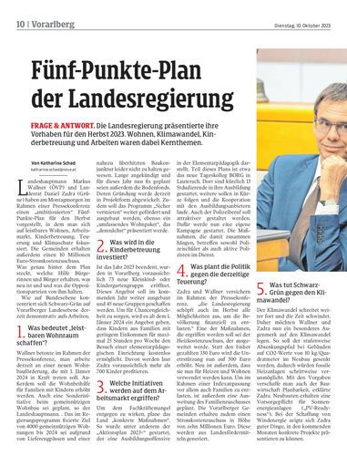 Frage & Antwort. Die Landesregierung präsentierte ihre Vorhaben für den Herbst 2023. Wohnen, Klimawandel, Kinderbetreuung und Arbeiten waren dabei Kernthemen.