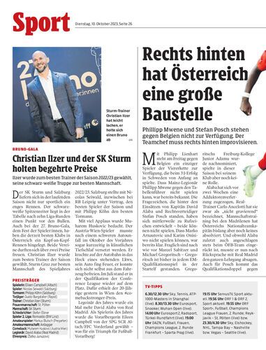 Ilzer wurde zum besten Trainer der Saison 2022/23 gewählt, seine schwarz-weiße Truppe zu besten Mannschaft.