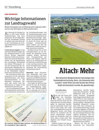 Der Altacher Bürgermeister bestätigte der Gemeindevertretung, dass „im Interesse des Landes“ mehr Kies aus der Grube der Firma Kopf entnommen wurde als genehmigt.