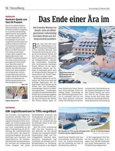 Die Familie Werner ist bereit, sich als Miteigentümer vollständig von dem Hotel am Arlberg zurückzuziehen.