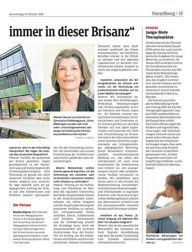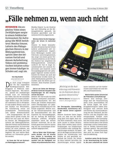 Interview. Ein explizites Video eines Zwölfjährigen sorgte in einem Feldkircher Gymnasium für Aufregung (die NEUE berichtete). Monika Steurer, Leiterin des Pädagogischen Diensts in der Bildungsdirektion, spricht über den brisanten Vorfall und dessen Aufarbeitung. Videos mit problematischen Inhalten schlagen immer häufiger in Schulen auf, sagt sie.