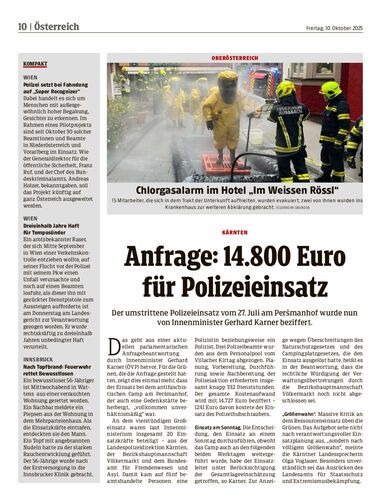 Der umstrittene Polizeieinsatz vom 27. Juli am Peršmanhof wurde nun von Innenminister Gerhard Karner beziffert.