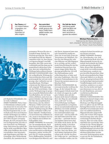 THURNHER kontr@ FLEISCHHACKER Ein Wortgefecht ohne Sichtkontakt. Die Kontrahenten sitzen vor ihren Laptops, schärfen Argumente und gehorchen drei Regeln: