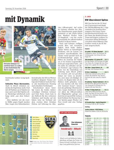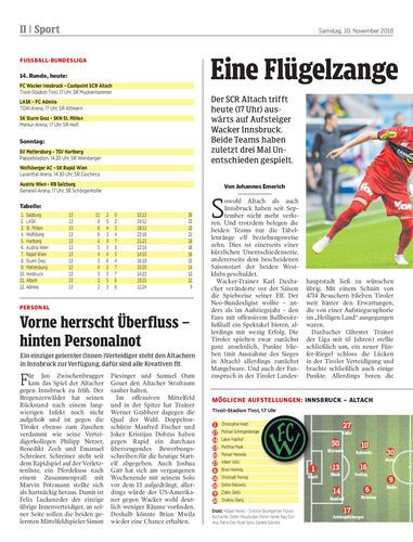 Der SCR Altach trifft heute (17 Uhr) auswärts auf Aufsteiger Wacker Innsbruck. Beide Teams haben zuletzt drei Mal Unentschieden gespielt.