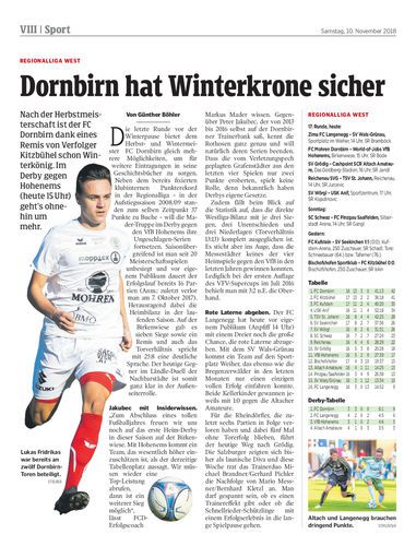 Nach der Herbstmeisterschaft ist der FC Dornbirn dank eines Remis von Verfolger Kitzbühel schon Winterkönig. Im Derby gegen Hohenems (heute 15 Uhr) geht’s ohnehin um mehr.