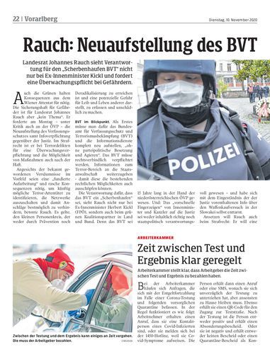 Landesrat Johannes Rauch sieht Verantwortung für den „Scherbenhaufen BVT“ nicht nur bei Ex-Innenminister Kickl und fordert eine Überwachungspflicht bei Gefährdern.