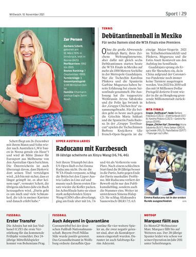 18-Jährige scheiterte an Xinyu Wang (1:6, 7:6, 4:6).
