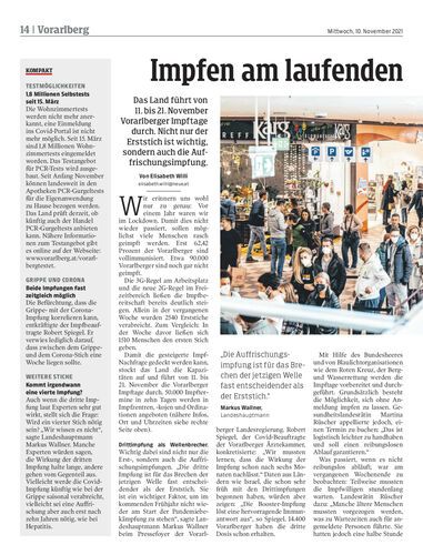 Das Land führt von 11. bis 21. November Vorarlberger Impftage durch. Nicht nur der Erststich ist wichtig, sondern auch die Auffrischungsimpfung.