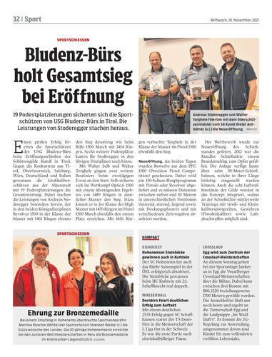 19 Podestplatzierungen sicherten sich die Sportschützen von USG Bludenz-Bürs in Tirol. Die Leistungen von Stoderegger stachen heraus.