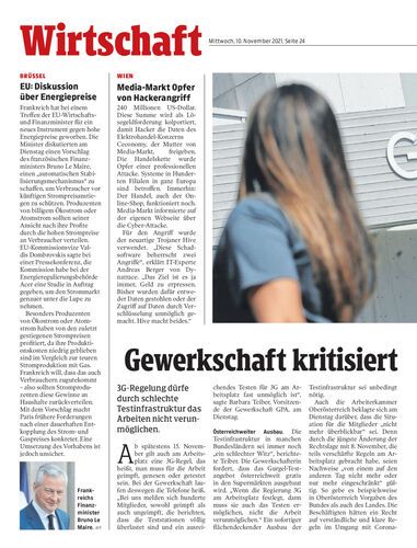3G-Regelung dürfe durch schlechte Testinfrastruktur das Arbeiten nicht verunmöglichen.