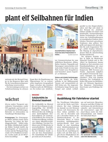 Erstes Projekt von Salzmann Ingenieure aus Bregenz und der Bernard Gruppe ist eine Stadtseilbahn in einer Millionenstadt. Das Investitionsvolumen beträgt rund 300 Millionen Euro.