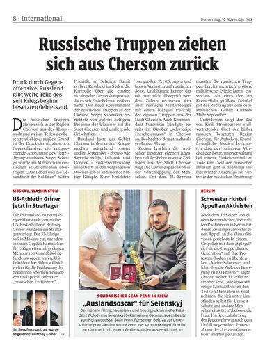 Druck durch Gegen-offensive: Russland gibt weite Teile des seit Kriegsbeginn besetzten Gebiets auf.