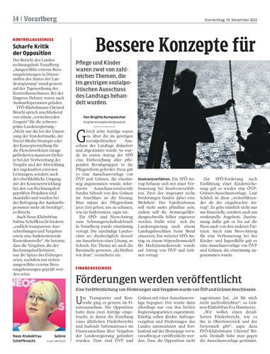 Pflege und Kinder waren zwei von zahlreichen Themen, die im gestrigen sozialpolitischen Ausschuss des Landtags behandelt wurden.