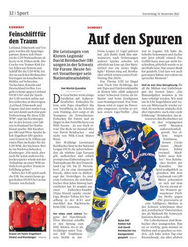 Die Leistungen von Kloten-Legionär David Reinbacher (18) sorgen in der Schweiz für Furore. Heute feiert Vorarlberger sein Nationalteamdebüt.