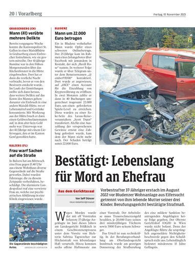 Vorbestrafter 37-Jähriger erstach im August 2022 vor Bludenzer Wohnanlage aus Eifersucht getrennt von ihm lebende Mutter seiner drei Kinder. Berufungsgericht bestätigte Strafmaß.