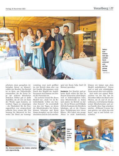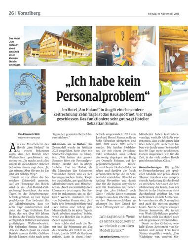 Im Hotel „Am Holand“ in Au gilt eine besondere Zeitrechnung: Zehn Tage ist das Haus geöffnet, vier Tage geschlossen. Das funktioniere sehr gut, sagt Hotelier Sebastian Simma.