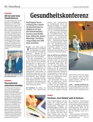 Halbtägige Veranstaltung des Landes im Montforthaus in Feldkirch mit gut 120 Teilnehmenden kostete rund 55.000 Euro. Allein die „Green Meetings“-Zertifizierung schlug mit 1300 Euro zu Buche.