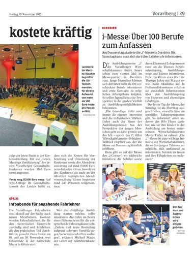 Am Donnerstag startete die „i“-Messe in Dornbirn. Bis Samstag kann man sich dort über Lehrberufe informieren.