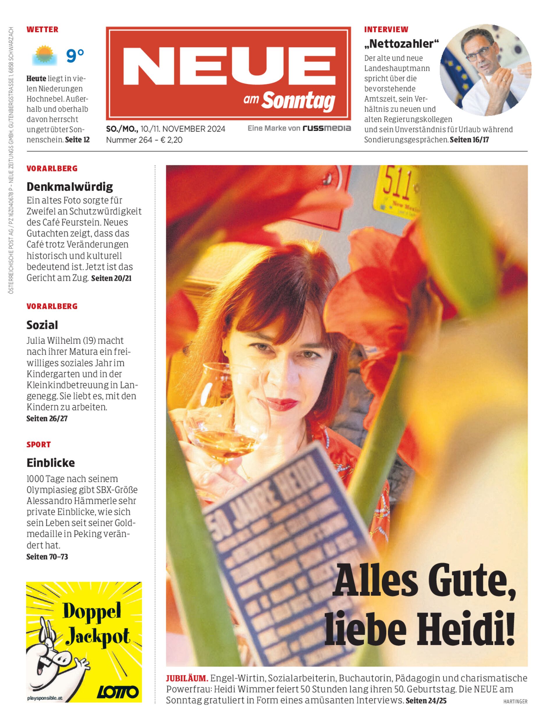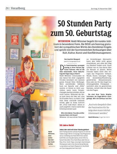 Interview. Heidi Wimmer begeht ihr rundes Jubiläum in besonderer Form. Die NEUE am Sonntag gratuliert der sympathischen Wirtin des Dornbirner Engels und spricht mit der facettenreichen Rothaarigen über Kult, Kultur, Kunst und Konfliktmanagement.