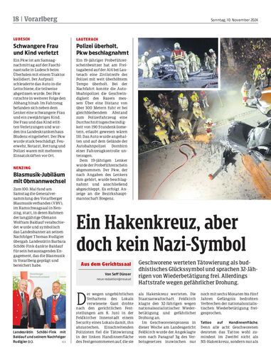 Geschworene werteten Tätowierung als buddhistisches Glückssymbol und sprachen 32-Jährigen von Wiederbetätigung frei. Allerdings Haftstrafe wegen gefährlicher Drohung.