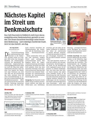 Das Café Feurstein in Feldkirch steht kurz davor, endgültig unter Denkmalschutz gestellt zu werden. Ein neues Gutachten bestätigt seine besondere Bedeutung – und widerlegt Zweifel der Stadt. Jetzt ist das Gericht am Zug.