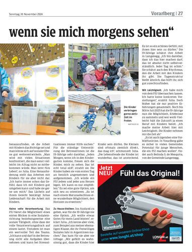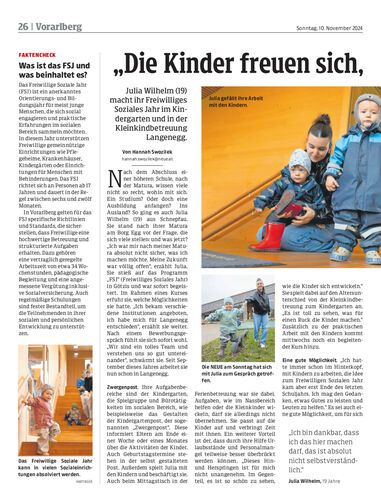 Julia Wilhelm (19) macht ihr Freiwilliges Soziales Jahr im Kindergarten und in der Kleinkindbetreuung Langenegg.