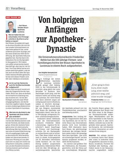 Die Unternehmenshistorikerin Friederike Hehle hat die 100-jährige Firmen- und Familiengeschichte der Braun-Apotheke in Lustenau in einem Buch aufgearbeitet.